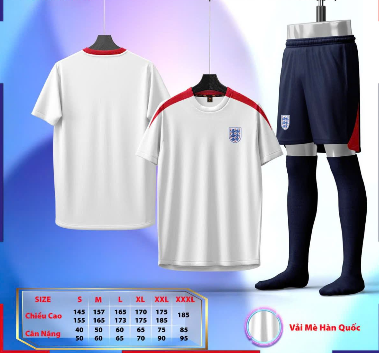 Bước sang mùa giải 2025–2026, tuyển Anh mang đến một diện mạo gọn gàng và hiện đại. Áo bóng đá ĐT Anh màu trắng không chỉ phục vụ thi đấu mà còn là lựa chọn lý tưởng cho anh em thích phong cách thể thao lịch lãm, đơn giản nhưng vẫn nổi bật đúng chất “Tam Sư”.