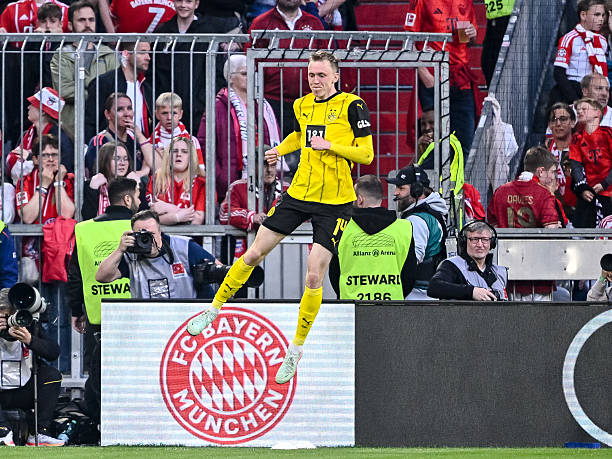 Riêng hiệp một, chủ nhà dứt điểm 13 lần với ba cơ hội ngon ăn (big chances) – so với 4 và 0 của Dortmund, nhưng không thể ghi bàn. Phung phí cơ hội, Bayern phải trả giá ở đầu hiệp hai. Phút 48, Julian Ryerson tạt từ cánh phải để Maximilian Beier đánh đầu đập đất qua hai chân thủ thành Jonas Urbig, đưa Dortmund vượt lên.