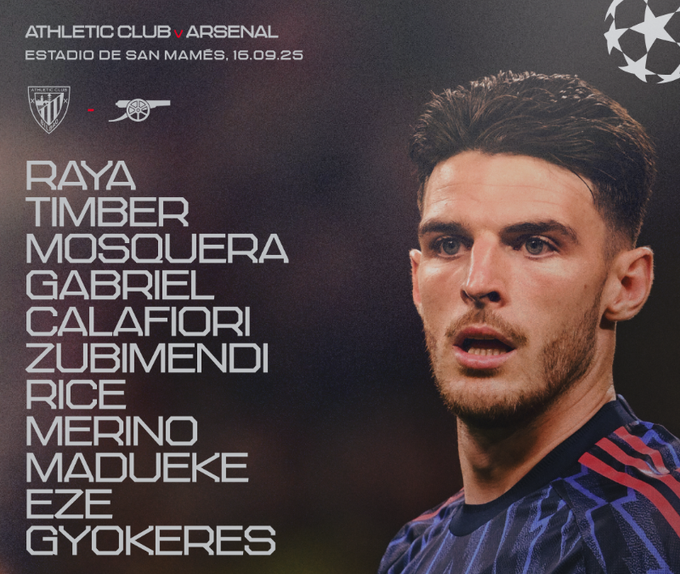 Đội hình hiện tại của Arsenal cũng gồm khá nhiều gương mặt từng chơi bóng tại giải VĐQG Tây Ban Nha và 4 cái tên có mặt trong danh sách xuất phát trước Bilbao gồm thủ môn David Raya, trung vệ Mosquera cùng cặp tiền vệ trung tâm Merino vs Zubimendi. Trên hàng công, bộ ba Madueke – Eze – Gyokeres có trận thứ 2 liên tiếp được sát cánh bên nhau ngay từ những phút đầu.