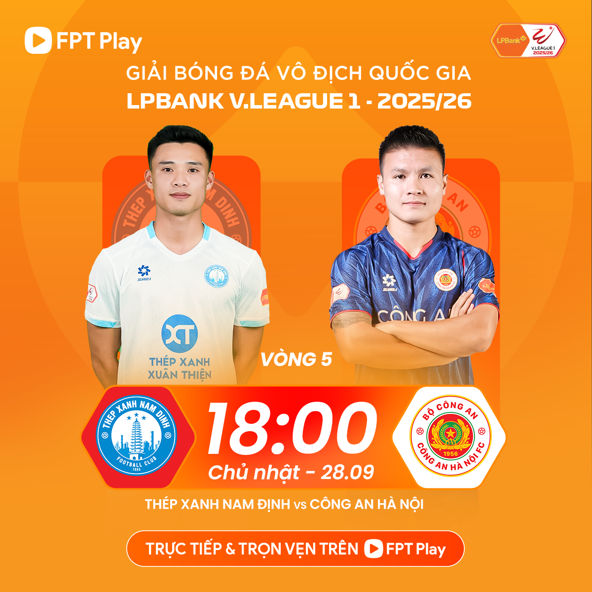 Trận đấu vòng 5 LPBank V-League 1-2025/26 giữa Nam Định và CAHN tại sân Thiên Trường hứa hẹn là tâm điểm của vòng đấu, nơi hai ứng cử viên vô địch đụng độ trực diện.