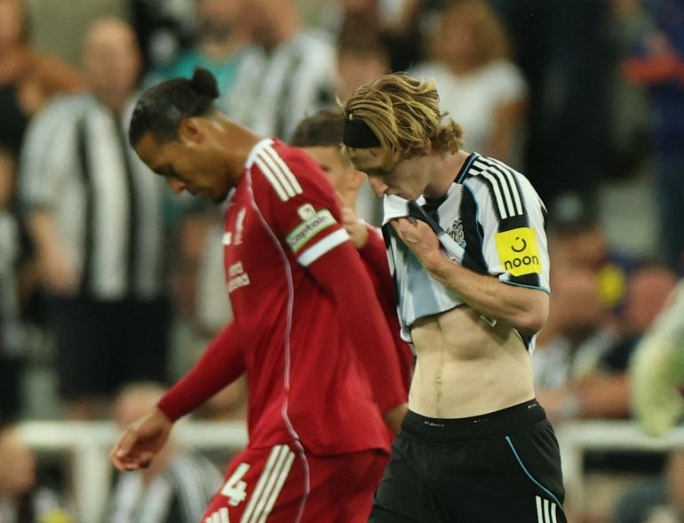 Newcastle: Nick Pope, Kieran Trippier (Hall 76′), Fabian Schar (Thiaw 81′), Dan Burn, Tino Livramento, Bruno Guimaraes, Sandro Tonali (Miley 66′), Joelinton (Ramsey 76′), Anthony Elanga, Anthony Gordon, Harvey Barnes (Osula 76′).