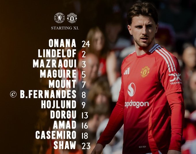 Manchester United: Andre Onana, Victor Lindelof, Harry Maguire, Luke Shaw (Ayden Heaven 81′), Noussair Mazraoui, Casemiro (Ugarte 70′), Mason Mount (Garnacho 70′), Patrick Dorgu, Amad Diallo, Bruno Fernandes (Mainoo 81′), Rasmus Hojlund.